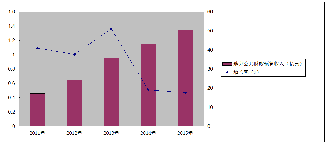 图2隆德县2011-2015年地方公共财政预算收入