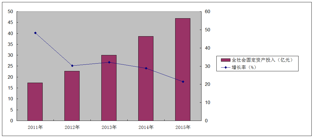 图3隆德县2011-2015年全社会固定资产投入