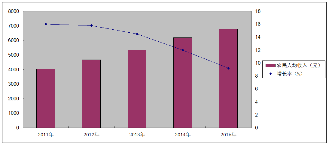 图5隆德县2011-2015年农民人均可支配收入