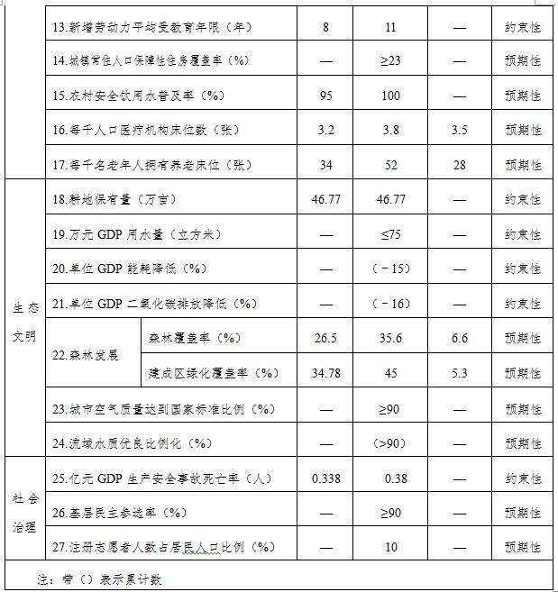 | 20.五年转移农业劳动力(万人次) | 4.4 | 20 | — | 20 | — | 实现 |