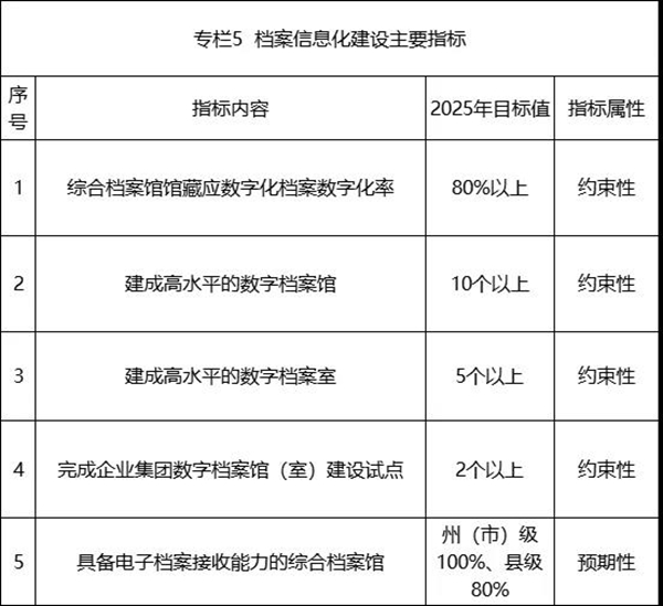 ——档案信息化建设再上新台阶。持续推进档案信息化战略转型,加快档案数字化,规范电子档案管理,推动档案信息共享,以信息化为核心的档案管理现代化初步实现。