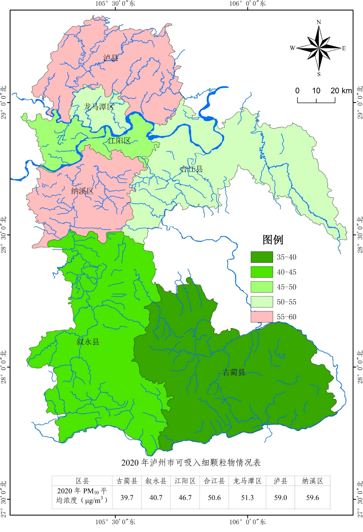 附图7 泸州市2020年PM10浓度分布图