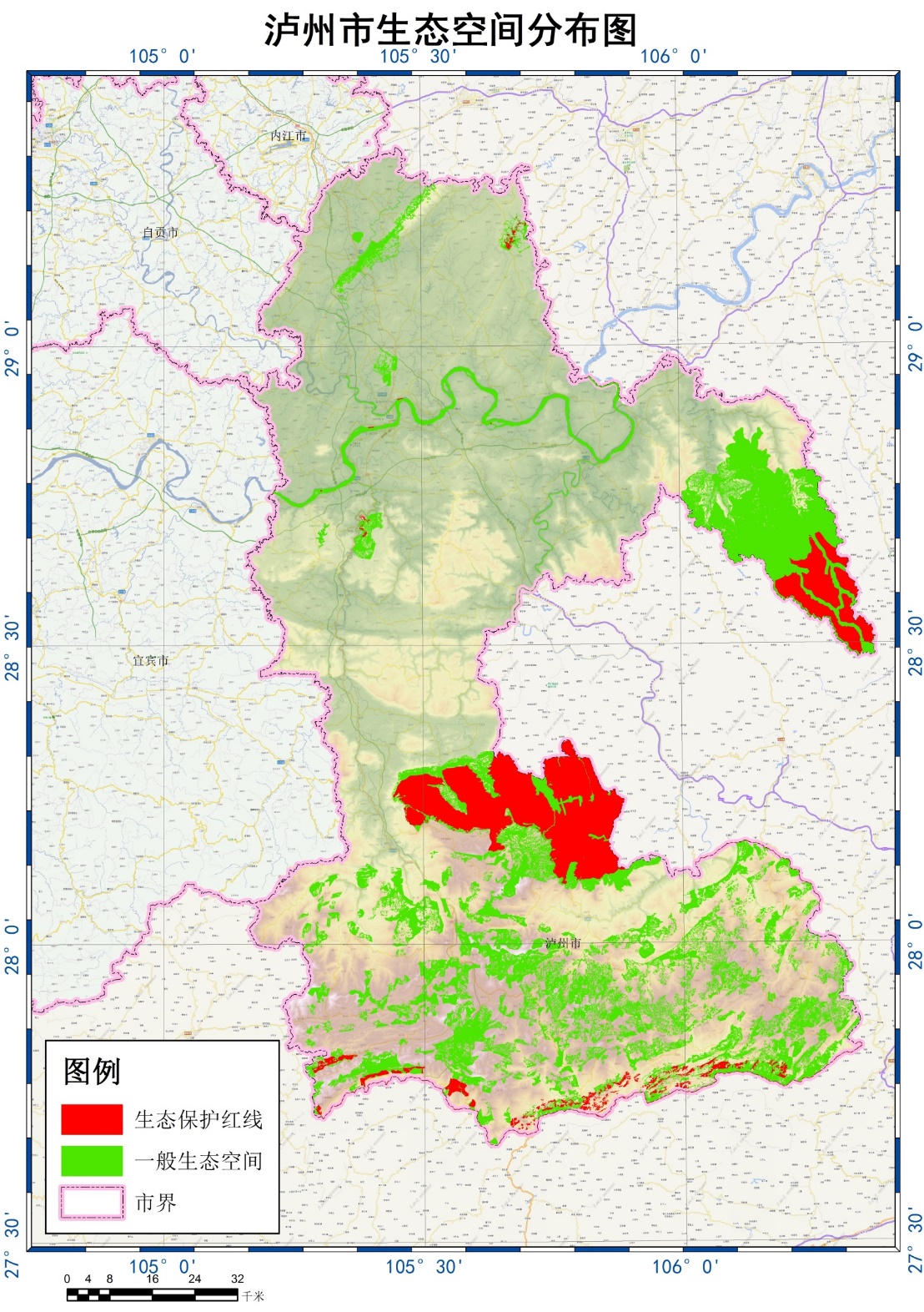 附图10 泸州市2020年生态空间分布图