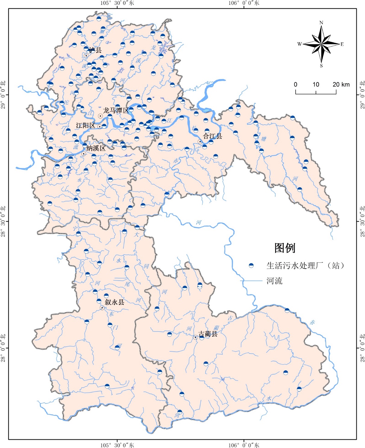 附图5 2020年泸州市生活污水处理设施分布图