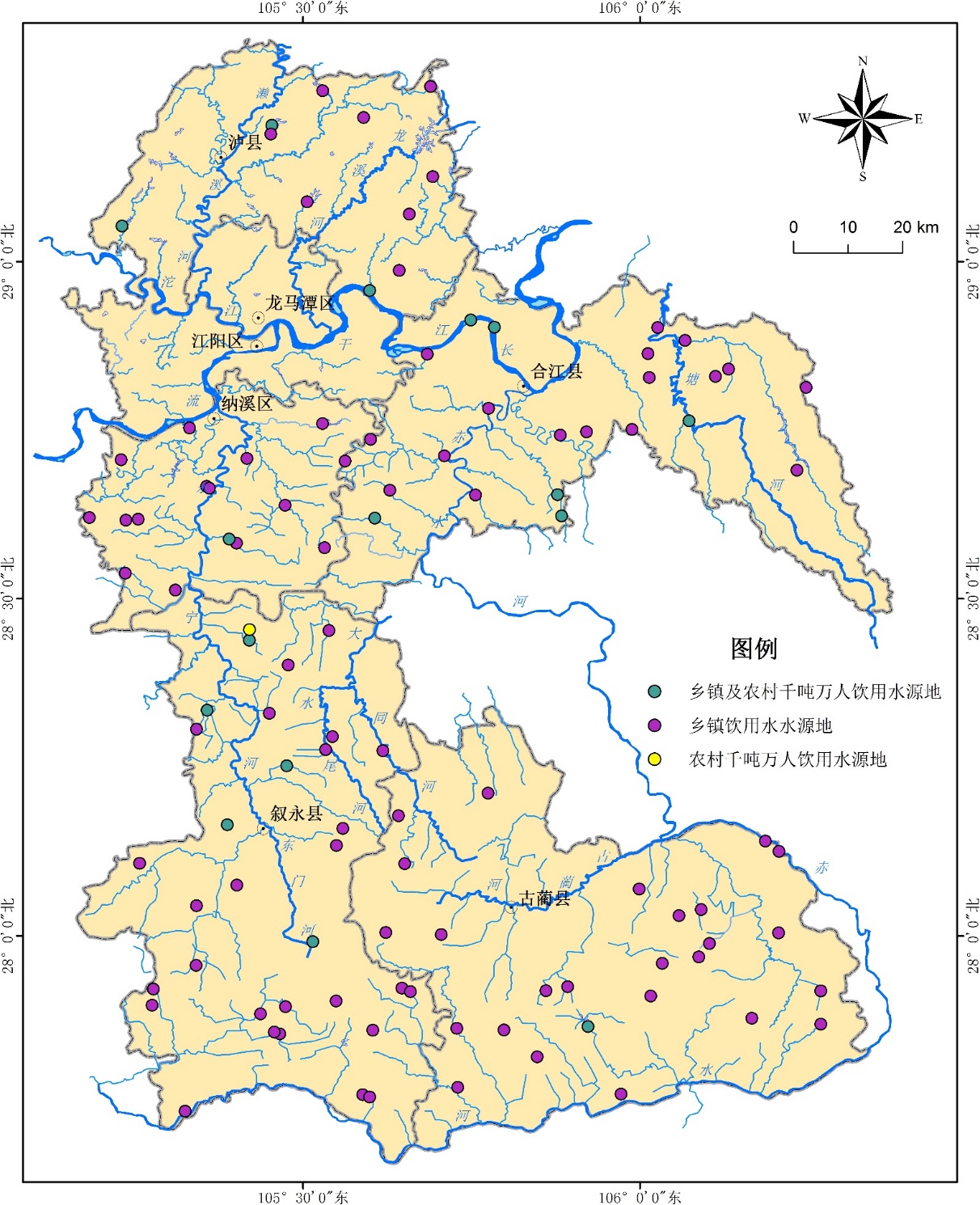 附图6 2020年泸州市乡镇及农村千吨万人饮用水源地分布图