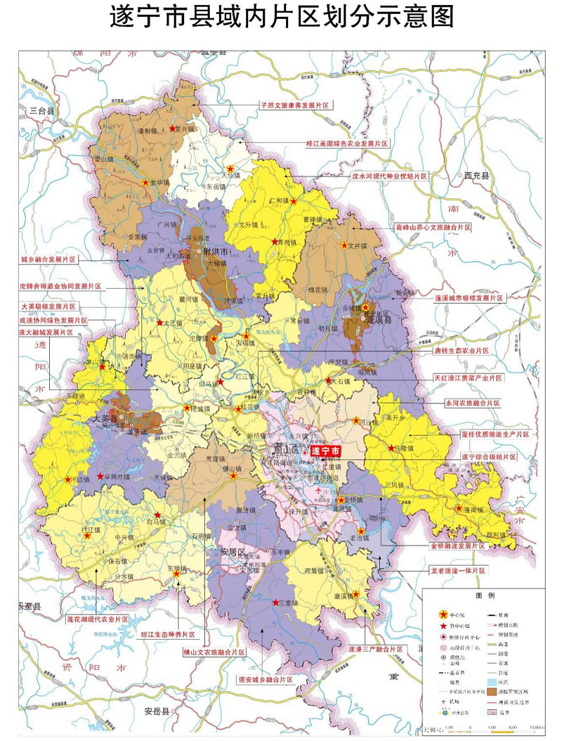 图3-1 遂宁市县域内片区划分示意图