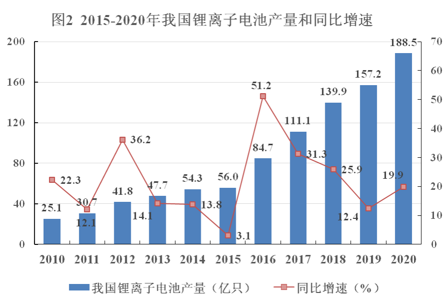 发展的有利形势在不断呈现。在全球环境污染日益严重、能源日趋紧张的背景下,发展新能源成为保障能源安全、提高环境质量、实现产业振兴的重要突破口。“十三五”期间,我国锂电池出货量年均复合增速约25%。2020年,总出货量为138GWh、同比增长15%。随着《新能源汽车产业发展规划(2021—2035年)》的推进实施,有关权威机构预计到2030年中国锂电池出货量规模可达1200GWh,为2019年的近10倍。国家大力支持新基建和新能源产业发展,随着国家层面“双碳”目标的布局,锂电产业在间歇性能源储能、智能电网、清洁终端能源等方面获得新的发展机遇。2020年9月,国家发展改革委、科技部、工业和信息化部、财政部四部委联合出台《关于扩大战略性新兴产业投资培育壮大新增长点增长极的指导意见》,明确提出综合运用财政、土地、金融、科技、人才、知识产权等政策,协同支持产业集群建设、领军企业培育、关键技术研发和人才培养等项目。工业和信息化部也明确提出,将鼓励企业根据使用场景研发换电模式车型,车电分离模式将得到全面的政策扶持,该政策将对锂电及新能源汽车行业产生重大影响。