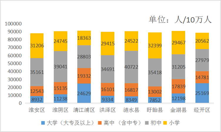 附图7 2020年各县区每10万人口中拥有的各类受教育程度人数