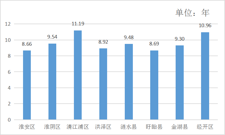 附图8 2020年各县区15岁及以上人口平均受教育年限