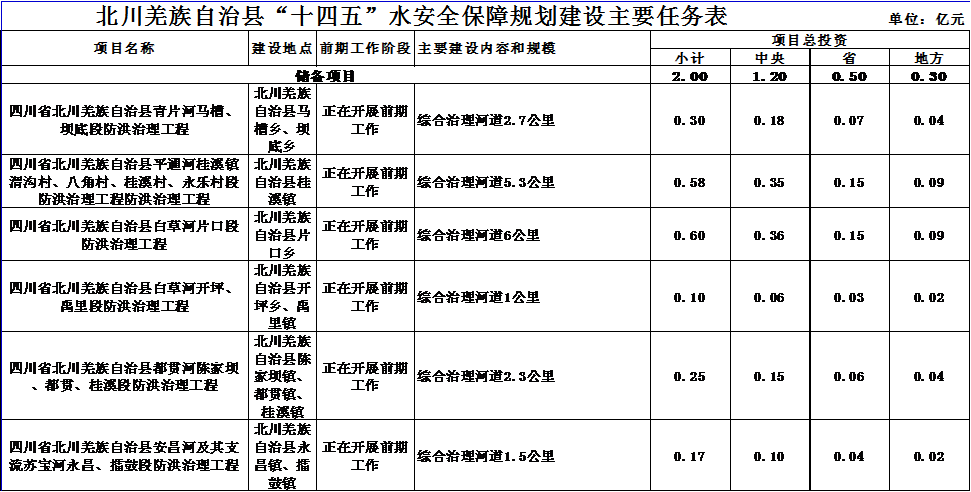 附表4:北川羌族自治县“十四五”水安全保障规划储备建重点项目表