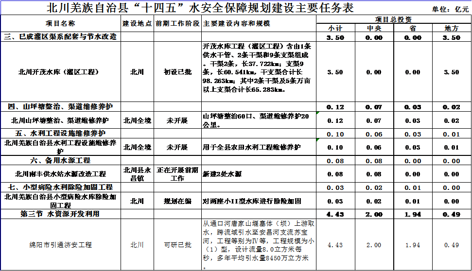4.续建的北川羌族自治县开茂水库(灌区工程)、绵阳市引通济安工程初步设计报告;