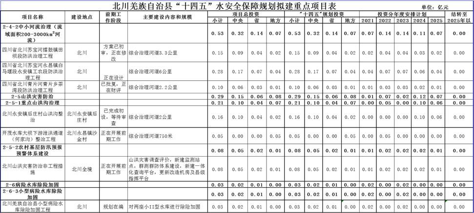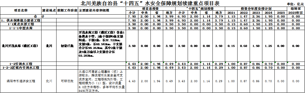 附表2:北川羌族自治县“十四五”水安全保障规划续建重点项目表