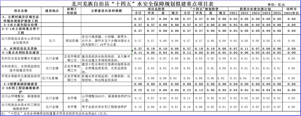 附表3:北川羌族自治县“十四五”水安全保障规划拟建重点项目表