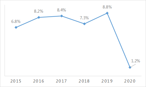 图1- 1 2015-2020规模以上工业企业增加值增速情况