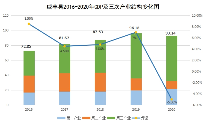 总量规模实现稳步提升。全县主要经济指标保持在合理区间,2019年地区生产总值达到96.18亿元,增幅居全州第二位,“十三五”前四年年均增长6.2%,2020年地区生产总值实现93.14亿元,五年年均增长3.6%;固定资产投资前四年年均增长16.7%,远高于全州平均水平,2020年下降24.1%,五年年均增长8.7%;2019年地方一般公共预算收入达到4.73亿元,前四年年均增长7.5%,高于全州平均水平,2020年达到2.8亿元;2019年社会消费品零售总额达到65.25亿元,前四年年均增长11.3%,2020年预计49.54亿元,预计五年年均增长1.4%。产业结构调整取得重大突破,由2015年的22.8:20.7:56.6调整到2020年的23.4:11.3:65.3。品牌建设初见成效,“唐崖”区域公共品牌荣获2019年湖北省二十强农产品区域公用品牌称号,唐崖茶等95个农产品先后通过“三品一标”认证,奇泉乌龙茶等30余个农产品先后荣获国内茶叶博览会、农业博览会、绿色食品博览会金奖。