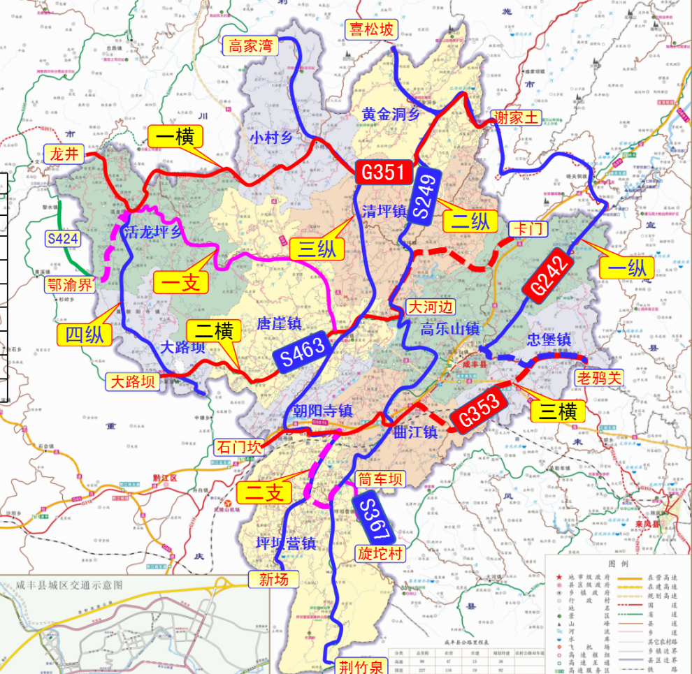 基础设施大底盘不断夯实。黔张常铁路通车运营,咸丰正式进入“高铁时代”,为咸丰建设区域交通枢纽、构建对外开放通道奠定了良好基础。咸丰大道全面建成,城市骨架拉伸18平方公里,高铁新城渐行渐近。宣咸高速开工建设,利咸高速即将开工,放射状高速公路网络正逐步形成。重要国省道提标升级加速推进,“四好”农村路建设全面铺开,乡村通行条件根本改善。农村饮水安全工程、水源保护工程、防洪工程、河道治理工程稳步推进,实施6批次精准扶贫农村饮水安全工程,龙洞湾水库、县城二水厂、乡集镇跨区域调水等工程基本完成,城乡用水供给能力显著改善。大力推动国网改造,建成以110千伏为中心、35千伏为骨架、10千伏及以下线路为辐射的供电体系,领跑世界的渝鄂直流背靠背换流站落地咸丰、投入运营,动力电覆盖100%的自然村,电力保障能力显著提升。信息基础设施建设全面推进,宽带接入水平大幅提升,光纤进村和4G网络实现全覆盖,信息化水平显著提高。