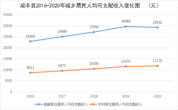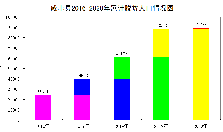 脱贫攻坚战取得决定性胜利。全面落实党中央和省委、州委关于脱贫攻坚部署要求,紧紧围绕“2019年户脱贫、村出列、县摘帽”目标任务,坚持“六个精准”,实施“五个一批”,因地制宜打造“五基一动力”咸丰扶贫模式,举全县之力,尽锐出战、精准发力,脱贫攻坚取得决定性胜利。2019年实现农村常住居民人均可支配收入11476元,2020年农村常住居民人均可支配收入达到11720元,较2013年基数增长127.48%。全县贫困人口43796户149357人全部实现脱贫,66个重点贫困村全部出列,全县顺利脱贫摘帽,脱贫攻坚取得决定性胜利,千百年来消除绝对贫困的愿望变成现实,与全国同步全面建成小康社会的奋斗目标即将实现。