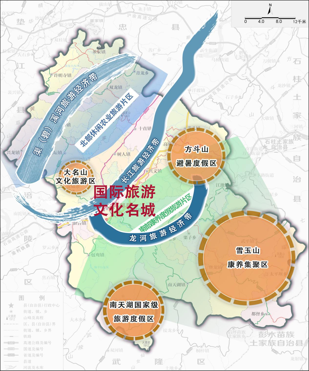 “一城一枢纽四基地”建设取得重大进展。城市旅游功能更加突出、民俗文化符号更加凸显,文旅产业“一业带百业”引擎作用和联动效应更加彰显,打造世界级、国家级旅游品牌和文化品牌,国际旅游文化名城建设取得明显成效,沿江通道作用充分发挥,基础设施互联互通水平大幅提升,全市重要的交通枢纽基本成型。文旅产业成为县域经济的重要支撑,特色效益农业提质增效,绿色工业大步发展,现代服务业集聚发展,商贸流通更加繁荣兴盛。全市度假康养基地、现代畜禽产业基地、绿色工业基地、商贸物流基地基本建成。到2025年,旅游综合收入达到200亿元,农业增加值超过60亿元,工业总产值突破500亿元,社会消费品零售总额达到300亿元以上。