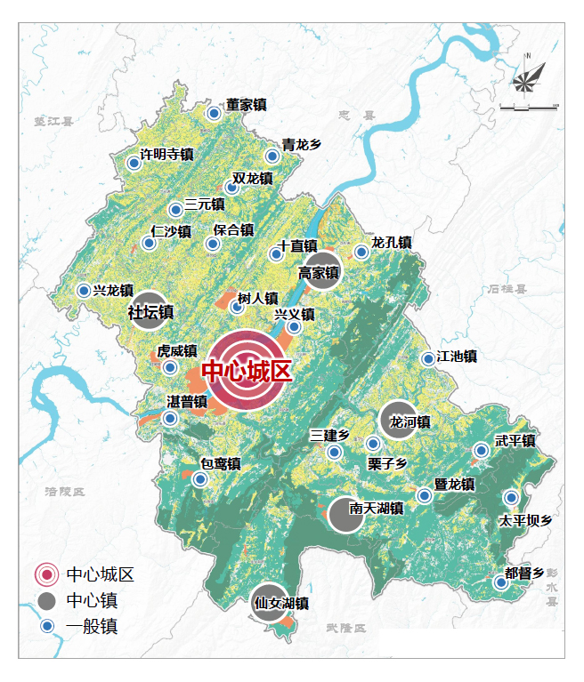 城乡协调发展成效显著。“一江两岸多组团”县城建设扩容提质,长江二桥、龙河新桥、幸福大道、龙城大道等重要项目建成通车,龙河东滨江公园、国际商贸城、五星级酒店等城市大件全面建成,北岸名山城区棚改旧改接近尾声,城市建成区面积达到21平方公里,城镇化率提高8个百分点达49.98%。成功创建国家园林县城、国家卫生县城、重庆市文明县城。大力实施乡村振兴战略,建设“四好农村路”2800公里,行政村通畅率、行政村通客车率均达100%。农村人居环境显著改善,创建市级人居环境示范片13个、美丽宜居乡村36个。农村“三变”改革和“三社”融合发展稳步推进。成功打造一批全国全市重点集镇、特色集镇、乡村旅游和农民新村示范点。