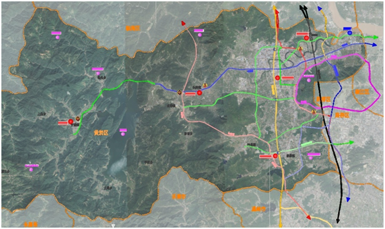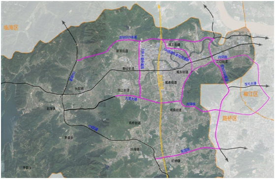 注:数据来自《台州统计年鉴》及黄岩区政府网统计信息。 3.智慧交通发展取得突破 随着社会经济的发展,人们对交通的期望从“通”向“快、顺、美”升级,智慧交通、绿色交通应运而生。近年来,将智慧与绿色融入交通发展理念,黄岩区推进了“四好农村路”“美丽公路”、国道“三提”等一系列交通品质提升工程,并推进智慧交通项目,以人为本,大大优化了出行体验。 4.综合管理和治理能力不断进步 黄岩区目前安全责任体系较为完善,安全管理制度较为健全,安全执法力度较大、能力较强,具有较强的应急保障能力。“十三五”期间,公路部门在综合管理方面成绩突出,2016年被省交通运输厅表彰为G20杭州峰会交通运输服务保障工作先进集体。一是撤销省界收费站,大力推广ETC。ETC用户占汽车保有量80%以上,已开拓多个ETC场景应用,并不断建设ETC基础设施建设;二是综合治超,长效管理。通过完善非现场执法系统建设、开展区域部门联动治超、开展专项打击活动、完善高速入口称重设备等手段实现综合治超,形成长效管理;三是不断夯实公路桥梁安全基础。黄岩区国省道桥梁一、二类比例稳定保持100%;四是提升执法水平和服务能力。从执法评议和各项自查评查、组织参加业务培训、规范巡查台账、开展“三基三化”建设、权力事项梳理、电子文件归档工作、督查检查、聘请法律顾问、规范执法流程和文书制作等方面,不断提升执法水平,完善执法过程;五是整治路域环境。通过开展“四边三化”、“三改一拆”系列行动实现路域环境“八个无”,同时因地制宜,推进桥下可利用空间管理工作。六是深化道路危险货物运输安全“雷霆整治”行动整治。建立“双网格长”责任机制,行业主管部门班子成员承担第一监管责任,企业法定代表人和实际控制人承担第一主体责任,“双网格长”分工协作、责任共担,推动监管工作横向到边、纵向到底。启动在江口街道芦村区块危化品运输车辆公用停车场建设,规划面积约80亩,容纳约250辆车停放,计划2021年底前投入使用。 (二)存在问题 黄岩区交通经过“十三五”建设,得到了很大的改观,路网得到了一定程度上的改善,基本形成了四纵四横的主骨架公路网,但主骨架公路基本分布在长潭水库以东,以西区域仅有一条高等级公路,呈现东密西疏的现象。四纵四横的主骨架公路网系统中,纵向连贯性好,横向连贯性较差,无法全面实现四纵四横相贯通,及需补充完善。近年来,黄岩城区规模与范围不断面扩大,物流园区与各产业区块分布欠匹配,城市交通体系相对滞后,特别是快速路体系的建设,需加快完善。目前黄岩区综合交通建设总体上仍然处于夯实基础阶段,距离高层次的综合立体交通网构建还需要经过漫长的过程。 1.高能级基础设施建设不足。 铁路方面,目前台州通车铁路总里程仅94公里,仅占全省(3211公里)约3%。甬台温铁路供给能力难以满足日益增长的铁路出行需求,经常一票难求。轨道方面,仍处于起步状态,全区无建成的轨道。公路方面,黄岩区一级公路以上占比仅8.93%,密度较低,且存在东密西疏、纵多横少等分布不均衡的情况。市区连接线通车后,全区高速公路总里程达到25公里,也只位列全市第8,处于中下游水平。 2.路网结构还需进一步完善。 从“十三五”末路网结构来看,全区交通虽然已经得到了很大程度的改善,但并没有解决根本问题。截至“十三五”期末,仅可形成“十三五”规划中“五纵五横”干线公路网中“四纵四横”的局部段,其中的老104国道、82省道穿城而过,街道化十分严重,承担干线公路的能力有限。“十三五”规划中东西向的十里铺至平田公路及黄岩南城至乐清福溪公路北洋至终点段现状均为低等级县乡道,无法满足作为干线公路的需求。 (1)对外通道不足 目前,南北向交通主干线为甬台温高速、老104国道及将要建成的新104国道,其中老104国道街道化较严重,承担过境交通的能力很有限,无法满足南北向交通流的需求。东西向交通主干线为82省道、82省道复线、104国道黄长放射线、院路路等,但往西方向的只有82省道,且也只延伸至宁溪镇,西行对外通道严重不足。 (2)高速公路进出口不足 黄岩高速公路进出口仅台州互通与院桥互通,两个互通间距约14公里,距离相对较大,高速公路与内环快速路之间缺少连接。 (3)城乡交通网络布局不合理 黄岩区境内地势复杂,受地形的制约,高等级分路主要分布于东部地区,其他地区尤其是西部山区公路等级普遍较低,部分乡镇间缺乏便捷连通的高等级公路,西部地区农村公路比重大,等级低,服务设施尚不完善,抗灾能力较弱,管养压力大。 3.黄岩主城区快速路网体系尚未形成,支撑市区融合发展的快速通道不足。 目前黄岩主城区干线路网主要有:老104国道、104国道黄长放射线、北院线、院路路等,但都未完成快速路建设,还未与台州市内环线形成高效的快速路网,导致黄岩城区内部交通压力大。过境交通无快速绕行线路,内环线禁止大货车通行,货运缺少快速路网联系,不利于货物的集散。 4.客货运输服务能效不高。 货运方面,黄岩区经济外向度高,大多数企业“两头在外”,物流成本偏高,制约着制造业发展;公路运输依然占据较大比例,大容量、长运距的水路和铁路运输优势未能有效发挥,公铁水多式联运等先进运输组织方式发展滞后,黄岩港区、台州南铁路站的货运潜