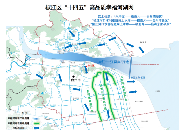 到2025年,初步构筑椒江区幸福水网总体脉络,一条河、三条河等河道创建为美丽(幸福)河湖,并选取先行段争创都市水利风景区。到2035年椒江干流段成为美丽(幸福)示范河段。通过湖泊水景观文化塑造、排涝骨干工程推动、河道网格优化,用绿廊将河道、湖泊、湿地、节点、城市功能、休闲功能等串联成平原河道水廊,形成椒江区独特的风景线,进一步结合台州市整体的幸福河湖计划,形成山海水城的水脉框架,带动市、区的高质量发展,更好满足人民群众对美好生活的追求。专栏四:幸福河湖工程重点项目 l 椒江区水生态修复项目(实施类):主城区的河道水生态修复、养护,计划2021年至2025年建设完成,投资约为2000万元。 l 椒北片区河道综合治理工程(实施类):项目位于椒江区北片,建设内容为梓林西大河、椒北南渠、山横张岙河等河道治理,椒北片河道清淤等,计划2021年至2025年建设完成,投资约为0.9亿元。 l 椒南片区河道综合治理工程(实施类):项目位于椒江区南片,建设内容为一条河、三条河、八条河等河道治理,椒南片河道清淤等,计划2021年至2025年建设完成,投资约为1.4亿元。 l 一条河、三条河等河道美丽(幸福)河湖创建工程:创建一条河、三条河等河道成为美丽(幸福)河湖。 l 水土治理工程(实施类):有计划的实施封禁管护、植被恢复、抚育更新、局部区域水土流失治理、城镇水土流失治理等治理工程。通过开展水土流失综合治理来改善当地的生态环境和生产条件,增强区域水土保持能力,提高群众的生产和生活水平,投资约为500万元。 |