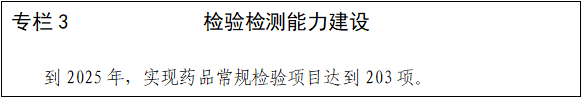 (四)提高检验检测能力。建立科学、公正、权威、高效的药品检验检测体系,依托药品检验检测资源,构建质量体系稳定的专业实验室,力争“十四五”末,达到检验检测结果开放共享,常规检验项目达到203项,涵盖2020版《中国药典》中化学药品和中药98%常规检验检测项目,能够完成医疗器械、化妆品监管所需技术支撑。