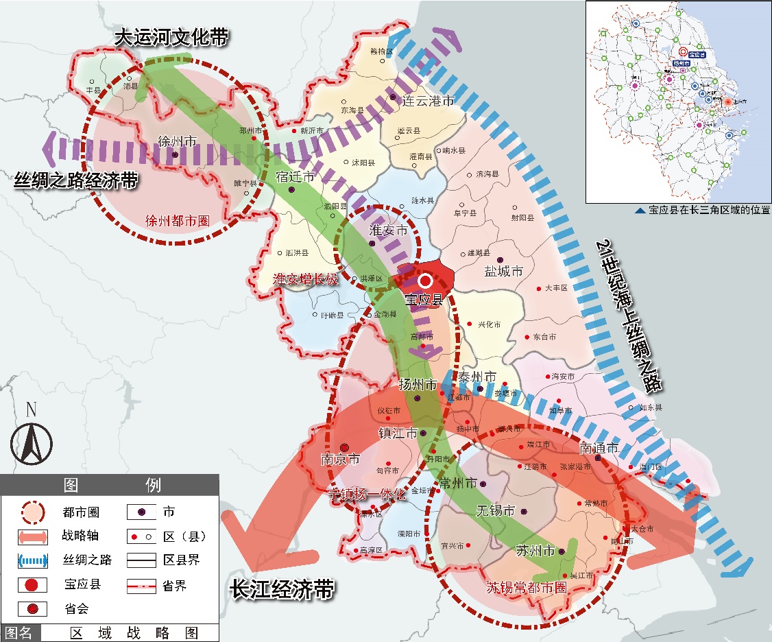 融合与竞争并存。宝应处于“一带一路”、长江经济带、长三角区域一体化、大运河文化带等国家战略叠加区域,为进一步构建对内对外开放新格局提供了更大可能。连淮扬镇铁路、宝应综合客运枢纽、省道331以及规划建设的宝应港“一港双区”、盐蚌高速宝应段等交通项目,将有力推动全县由“平面交通”向“立体交通”的快速转变。随着宁镇扬同城化、沿海开发等周边城市发展战略的加快实施,一方面,给我县在承接发达地区产业转移、扩大开放合作、融入区域协调发展等方面带来诸多利好;另一方面,区域竞争态势也将更加紧张,资源争夺将更加激烈,宝应面临着不进则退、慢进掉队的严峻挑战。