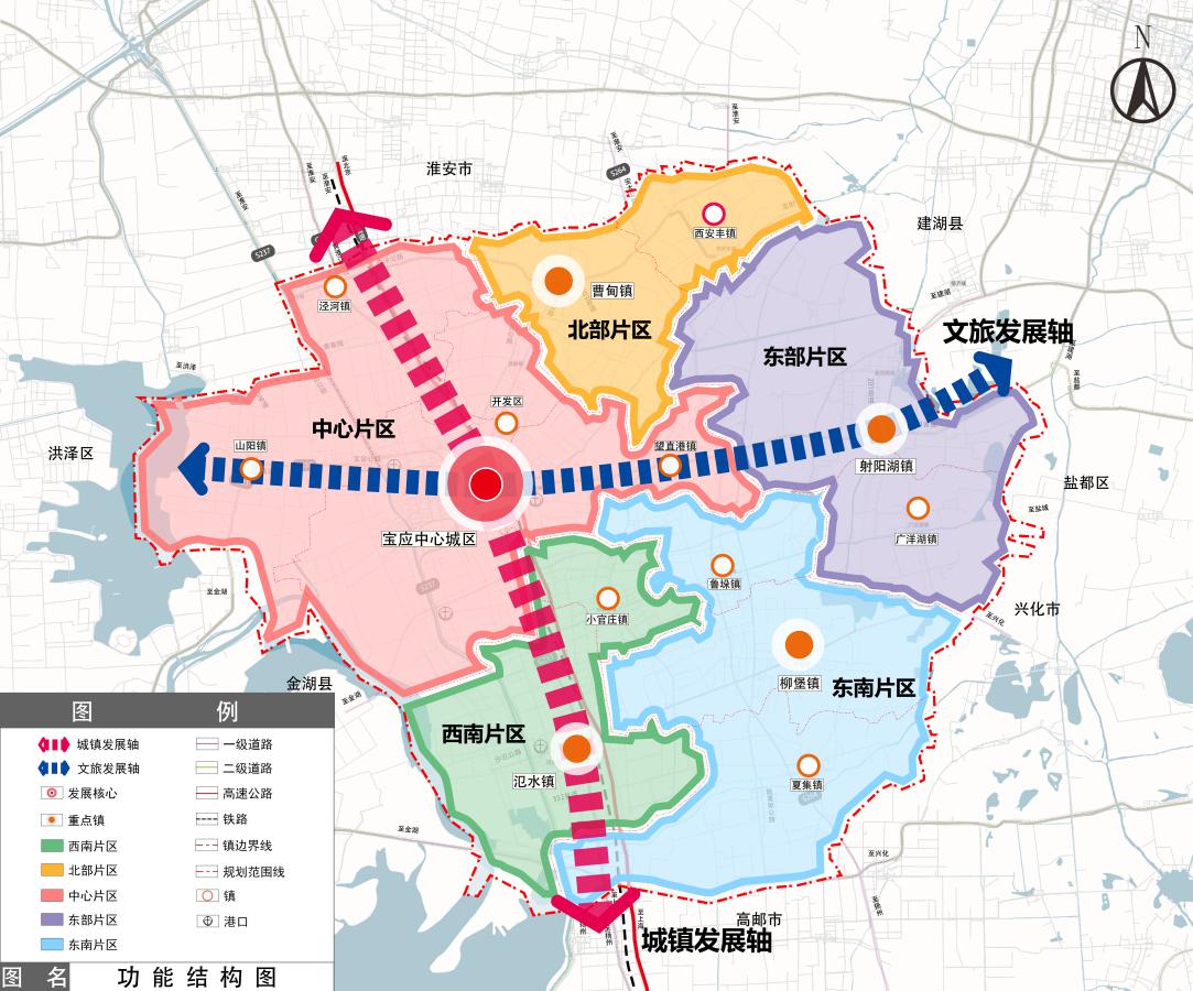 ——富民宜居活力区。坚持以人民为中心,聚焦民生共享,健全完善基本公共服务体系,构建文明和谐的社会稳定体系。形成精致整洁、清新舒适的城市品质,将宝应打造成为苏中地区具有影响力的宜居活力小城。