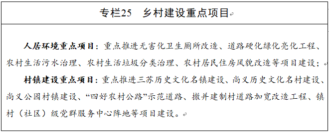 积极创建全省乡村振兴先进区,打造乡村振兴东坡样板。科学编制实施村镇规划,进一步优化村庄布局规划,有序引导农民向新型农村社区集中居住,建设有产业、有颜值、有底蕴、有秩序、有保障、有活力的“六有”新乡村。接续推进农村人居环境整治提升行动,继续实施农村“污水革命”“垃圾革命”“厕所革命”三大革命,开展村容村貌提升、农村生活垃圾治理、农村“厕所革命”、农村生活污水治理、农业废弃物资源化利用、乡风文明提升“六大行动”,实现乡村宜居宜业。到2025年,实现80%以上的行政村生活污水得到有效处理、垃圾集中转运处置率达到100%、无害化卫生厕所普及率达90%以上。加快补齐农村基础设施和公共服务短板,实施农村道路联网加密和提档升级改造,深入推进“四好农村路”建设,有序推进乡村公共空间和道路照明亮化。实施老旧农房风貌整治,打造“小规模、组团式、微田园、生态化”的幸福美丽新村崭新面貌,打造乡村振兴示范带。提升乡风文明程度,广泛开展“三苏家训家风”进农村活动,深入开展婚俗改革和绿色殡葬改革等移风易俗行动,治理社会不良风气。实施30个乡村公益性公墓建设项目,保障群众“逝有所安”。保护传统村落和乡村风貌,加强三苏镇鸭池村等特色景观旅游名村的保护、利用与发展。完善农民收入稳定增长机制,实现农民富裕富足,建成省级农民人均可支配收入先进区。