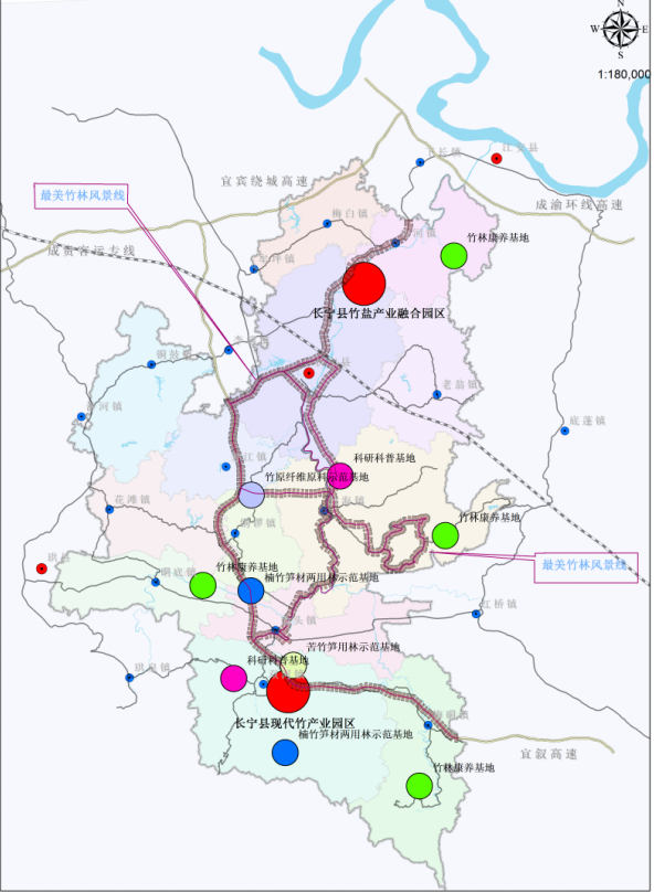 10 一线二园五基地:一线是最美竹林风景线;两园是长宁县现代竹产业园区、长宁县竹盐产业融合园区;五基地是优质笋用林基地、笋材两用林基地、竹纤维原料基地、竹林康养基地、竹科研科普基地。