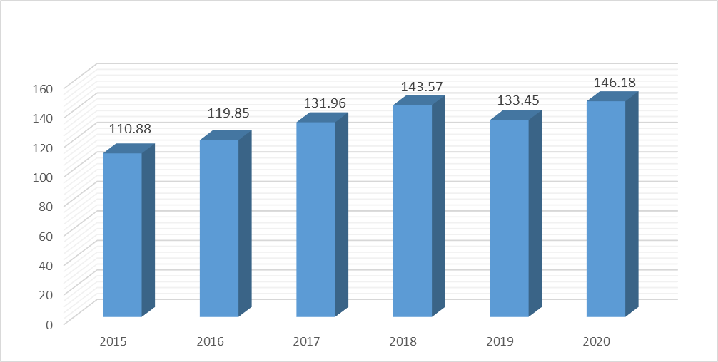 图1 筠连县十三五时期GDP情况(亿元)
