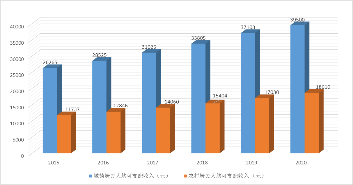 民生福祉 | 8.居民收入 | 城镇人均可支配收入(元) | 39500 | 59668 | 8.6 | 预期性 |