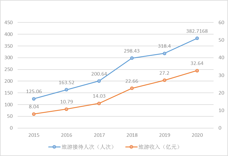 图4 筠连县十三五时期旅游接待人次与旅游收入情况