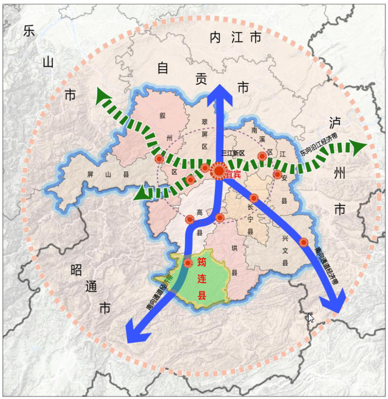 图6 筠连县在宜宾市的发展格局示意图