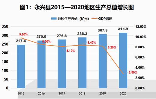1.经济总量迈上新台阶。“十三五”期间,全县坚持稳中求进工作总基调,全力以赴稳增长,综合实力不断增强,高质量发展迈出新步伐。地区生产总值从2015年的247.6亿元增长到2020年的314.9亿元;规模工业增加值保持年均增长7%左右;固定资产投资与经济增长水平保持同步增长。实施重点项目500余个,雄风公司等一批重点项目竣工或投产;华电永兴风电场等重点项目顺利实施;国家城市矿产示范基地、新材料新能源产业园等省重点项目顺利推进;社会消费品零售总额从2015年的70.9亿元增长到2020年的107.3亿元;一般公共预算收入超过20亿元,达到21.7亿元;城镇、农村居民人均可支配收入分别从2015年的25454元、14161元增长到2020年的36733元、20786元。经济实力在中部六省经济百强县中的排名列第37位,成为全国循环经济工作先进县、湖南省特色县域经济重点县、首批全面小康达标县、全面小康经济强县。