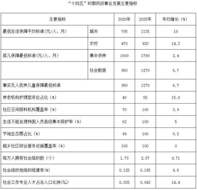 “十四五”时期全县民政事业发展的主要目标是: