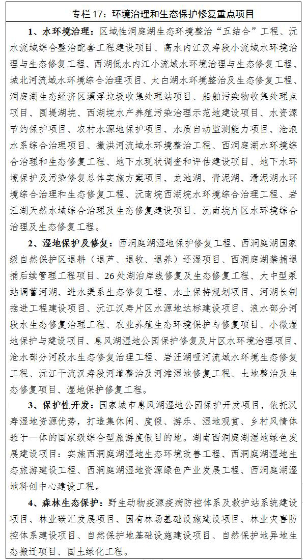 突出湿地生态修复,通过实施水系连通、控源截污、清淤疏浚、岸坡生态整治加固,规范河道、湖库湿地底泥处置,着力解决河湖、乡村小微湿地存在的突出问题,重点推进西洞庭湖湿地保护修复工程、西洞庭国家级自然保护区退耕还湿、西洞庭湖禁捕退捕后续管理工程、26处湖泊岸线修复及生态修复、大中型泵站调蓄河湖、进水渠系生态修复、水土保持规划、息风湖湿地公园保护修复及片区水环境治理和小微湿地保护与建设等项目。探索湿地生态资源保护性开发,充分挖掘河湖湿地文化与水文化,推进西湖灌区和岩马灌区水生态修复与保护,凸显本土化和区域特征。针对湿地功能退化、面积萎缩、生物多样性减少等现象,积极开展退耕还湿和湿地生态效益补偿。实行湿地面积总量管控,到2025年,全县湿地面积不低于85.66万亩。修复和保护湿地23.5万亩,全县湿地保护率稳定在72%以上,湿地占补平衡率达到100%。